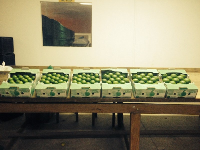 Colheita dos frutos: Os critérios utilizados para determinação do ponto de colheita da lima ácida Tahiti diferem dos demais citros e requer sistemática de colheita leva no mínimo 105 e no máximo 170 dias em função das condições climáticas do pegamento do fruto até o ponto de maturação ideal. Portanto a colheita é determinada por alguns fatores como: Diâmetro mínimo do fruto 47 mm, que é medido com o auxilio de argolas de 50 mm, deixando para próxima colheita os limões que passarem por dentro das argolas; Aspecto liso da casca para garantir o teor mínimo de suco; Cor verde escura para garantir a aparência e o aroma peculiar dessa lima ácida. São utilizadas pelos colhedores sacolas com capacidade máxima de 6 a 8 kg. E são nelas que as frutas são transferidas com cuidado para uma caixa de colheita plástica, que servirá para transportá-las até a casa de embalagem chamada de ‘Packing House’.